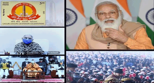 न्यूज़ डेस्क। प्रधानमंत्री नरेन्द्र मोदी ने गुरुवार को वीडियो कॉन्फ्रेंस के माध्यम से उत्तर प्रदेश के गोरखपुर जिले के चौरी चौरा में ‘चौरी-चौरा’ शताब्दी समारोह का उद्घाटन किया। 4 फरवरी, 2021 को चौरी चौरा घटना के 100 साल पूरे हो गए है। यह घटना स्वतंत्रता के लिए देश की लड़ाई की एक ऐतिहासिक घटना है। प्रधानमंत्री ने चौरी चौरा के शताब्दी समारोह को समर्पित एक डाक टिकट भी जारी किया। प्रधानमंत्री ने बहादुर शहीदों को नमन करते हुए कहा कि चौरी-चौरा में दिए गए बलिदान ने देश के स्वतंत्रता संग्राम को एक नई दिशा प्रदान की। उन्होंने कहा कि चौरी चौरा में सौ साल पहले हुई यह घटना केवल आगजनी की घटना नहीं थी बल्कि चौरी चौरा का संदेश बहुत व्यापक था। यह आगजनी की घटना किन परिस्थितियों में हुई और इसके पीछे क्या कारण थे, ये सब समान रूप से महत्वपूर्ण हैं।