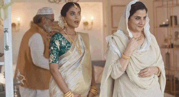 साथ ही मुस्लिम परिवार का बुजुर्ग भी साज-सजावट में व्यस्त रहता है। बैकग्राउंड में एक महिला कहती है, “रिश्ते हैं कुछ नए-नए, धागे हैं कुछ कच्चे-पक्के। अपने बल से इन्हें सहलाएँगे, प्यार पिरोते जाएँगे। एक से दूजा सिरा जोड़ देंगे, एक बँधन बनते जाएँगे।” इस वीडियो में भरा-पूरा मुस्लिम परिवार दिखता है, जहाँ बुजुर्गों से लेकर बच्चों तक गर्भवती महिला को सरप्राइज देने के लिए बगीचे में इन्तजार कर रहे हैं।