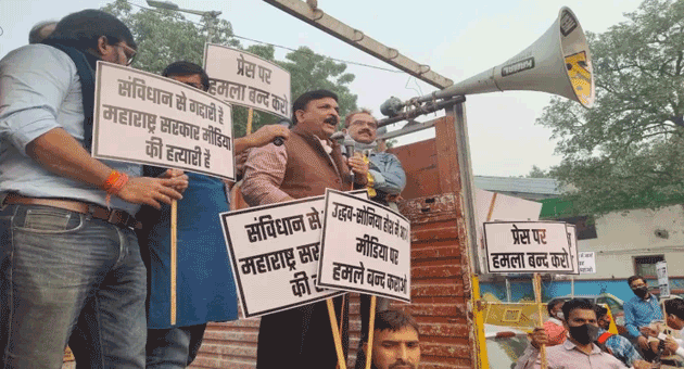 ‘उद्धव सोनिया होश में आओ’: दिल्ली के प्रेस क्लब के बाहर अर्णब गोस्वामी के समर्थन में उमड़ा हुजूम